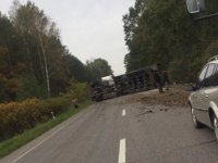 На трасі Київ-Ковель-Ягодин вантажівка перекинулась і перегородила дорогу.