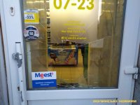 17-річний хуліган у стані алкогольного сп’яніння розтрощив скляні двері у магазині «7/23», що знаходиться на проспекті Соборності, 26
