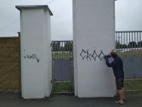 На арці вхідних воріт стадіону «Шахтар» двоє молодиків «відмітились» написами.