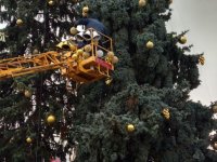 У Луцьку на Театральному майдані почали прикрашати головні ялинки міста.