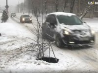 У Луцьку автівка влетіла у провалля на дорозі. ВІДЕО