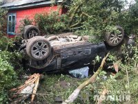 Позашляховик протаранив паркан приватного будинку, врізався у дерево та перекинувся.