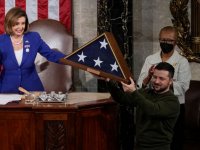 Президент передав конгресменам прапор, який просили передати українські захисники, що наразі перебувають у Бахмуті.