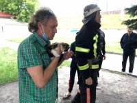 Бійці ДСНС зняли з дерева кошеня, яке не могло самотужки злізти.