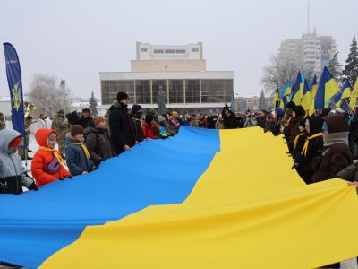 Лучани розгорнули 200-метровий прапор у День Соборності України. ФОТО