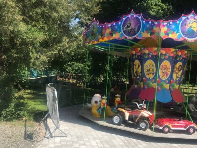 Атракціони вже працюють на повну, люди активно катаються.
