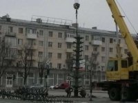 В окупованому терористами Луганську комунальні служби на Театральній площі встановили каркас новорічної ялинки