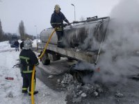 У Рожищі рятувальники гасили пожежу молоковоза