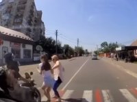 У місті на Волині мотоцикліст ледь не наїхав на жінку та дівчину, які на «зебрі» переходили дорогу. ВІДЕО