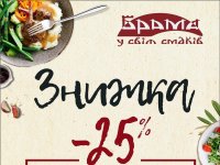 У ресторації «Брама» – 25% знижки на усю «гарячу лінію» харчування*