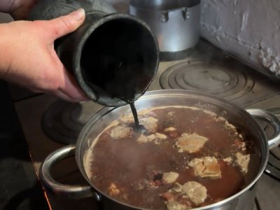 Чорний борщ — автентична страва Шацького краю на Волині. Традиційно її готують в той день, коли колють кабана і є свіжина