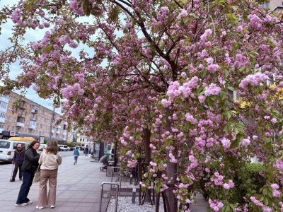 Перші рожеві бутони вже почали розкриватися у центрі міста.