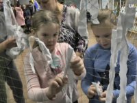 На Волині школярі з батьками та вчителями сплели 2 тисячі квадратних метрів маскувальних сіток для ЗСУ