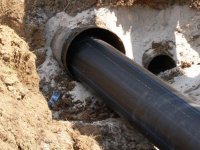 На проспекті Волі у Луцьку, де триває реконструкція, демонтують стару каналізаційну трубу з автошляху та будують нову.