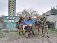 Журналіст Андрій Цаплієнко поширив фото захисників із синьо-жовтим стягом на в’їзді в село
