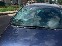 Інцидент на Грушевського: опублікували відео, як велосипедист вибив головою скло в автомобілі патрульних