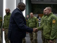 Міністр оборони США також сказав, що він прибув, щоб засвідчити, що США залишаються пліч-о-пліч з Україною.