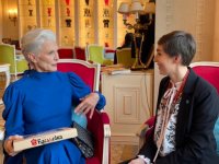 Галина Падалко, директорка з комунікацій у видавництві та уродженка Луцька вирішила подарувати пані Мей вишиванку від відомого волинського етнобренду