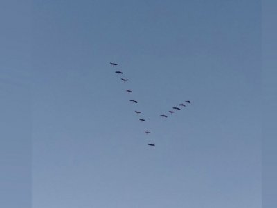 Відлітають журавлі: птахи у небі над Луцьком. ФОТО