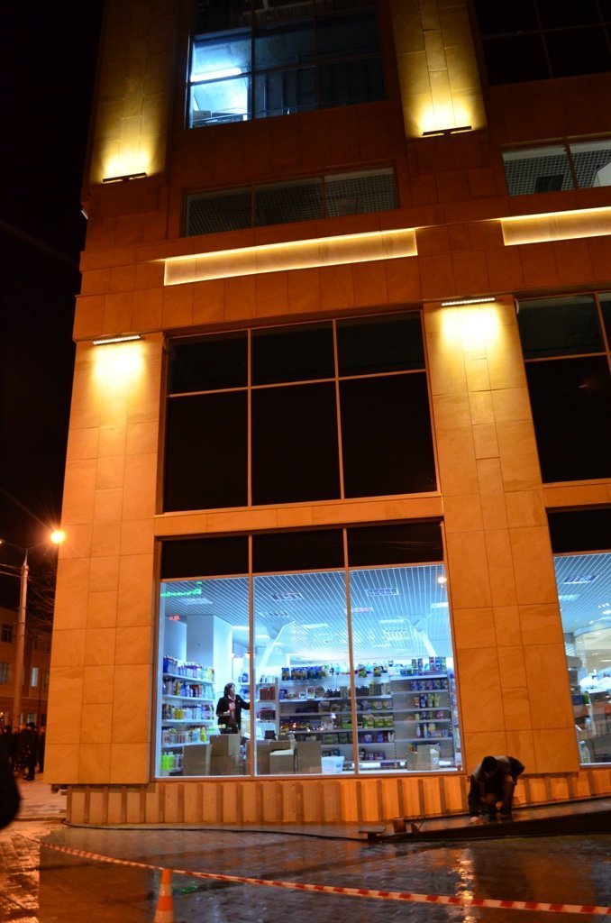 мда, нормальні торгові центри на перших поверхах розміщують магазини з гарним одягом чи прикрасами,які через велитенські вікна добряче проглядаються і заманюють покупців зайти всередину. А тут якісь банки-склянки і доместос. Маркетологи ще ті попрацювали. От вам і обличчя нового ЦУМУ і міста теж.