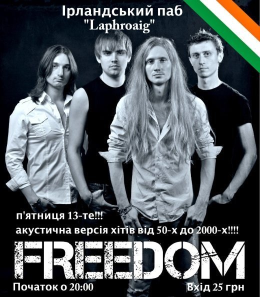 Гурт FREEDOM у повному складі пропонує ОНОВЛЕНУ , АКУСТИЧНУ версію хітів від 50-х до 2000-х !!!!!