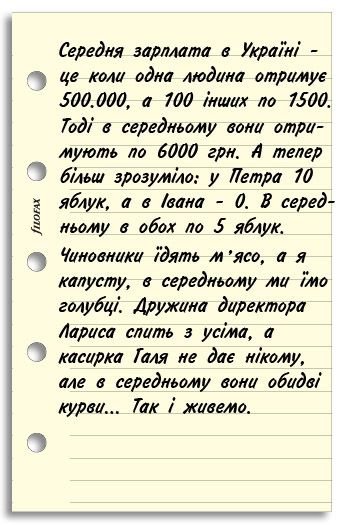 А цей узагальнений та коротенький,але змістовний звіт філіала міністерства «Пакращення»-Управління статистики України,де невтомно працює ціла армія статистів: обласних, міських,районних,міжрайонних,сільських,міжсільських:управлінь,відділів,підвідділів,розділів,підрозділів,філіалів,підфіліалів,які зайняті підрахунками результатів «пакращення» взагалі в коментах не нуждається,тому як подають вони у звіт результати підрахунків результатів,у своєму неординарному жанрі середньостатистичних даних,які далекі від істини:
