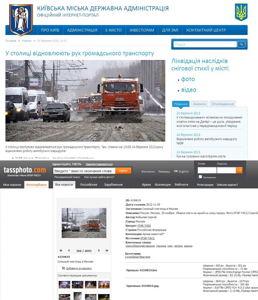 А ось один із методів феліала «пакращення» в образі КМДА,які на своєму офіційному сайті розмістили світлини вбирання снігу на вулицях столиці України,запозичивши фотографії (ИТАР-ТАСС из Москвы)
