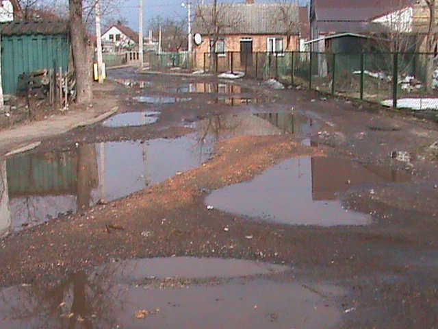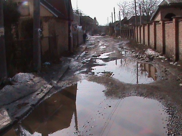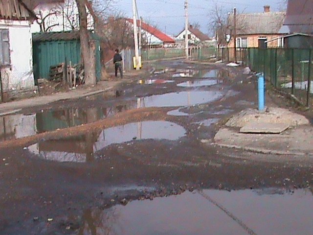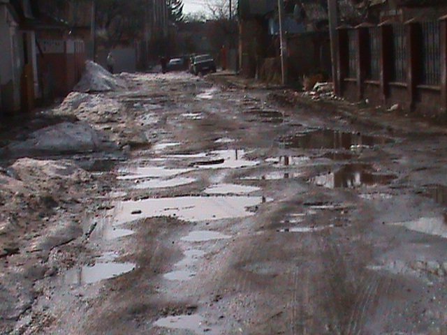 А це такий собі в мікрорайоні «Красне» живопис - андеграунда критичного реалізму авторської роботи природно-стихійної імпровізації з елементами анімації, виконаної у японському стилі «то яма,то канава»,що означає - «Обережно!Не цензурна зона!» До речі,ремонт доріг на цих аварійних участках не проводився більше ,ніж 30 років!