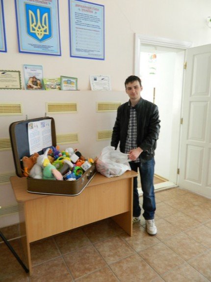 своїми щирими дарунками. Це були іграшки, кубики, та інші речі, які так необхідні малюкам. Цю валізу - добра працівники бібліотеки, з найбільш активними родинами, дітьми передадуть у лікувальні установи, де перебувають діти.