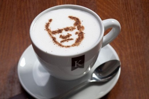 В московській мережі кав'ярень Кофеин почали пропонувати каву з малюнками кандидатів у президенти - Путіна, Жириновського, Зюганова, Прохорова та Миронова