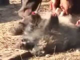 Эту лису подготавливают к убийству посредством пропускания электрического тока через анальное отверстие.
