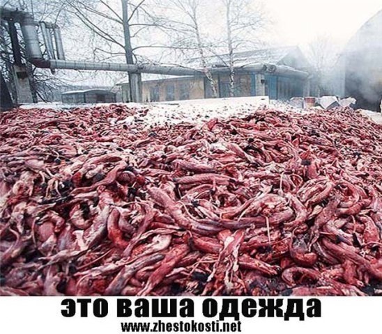 Значительная доля меховых изделий, продаваемых в России как на рынках ширпотреба, так и в элитных домах моды - производства Китая, в том числе из меха кошек и собак, содранного с животных заживо.