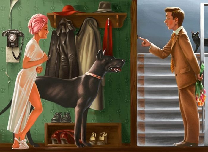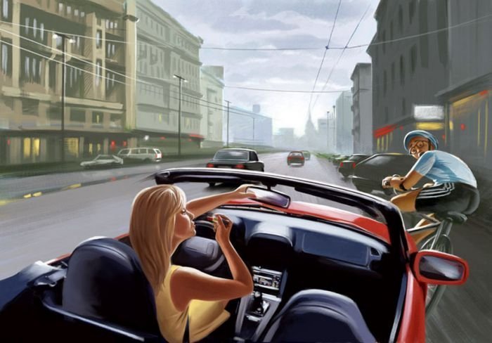 «Работаю при помощи заготовок. Нахожу фотографии из ретровских галерей. Коллажирую их по теме и смыслу, который хочу вложить. Иногда приходится перерисовывать заново, если не подходит освещение или другие моменты», - пишет сам Барыкин.