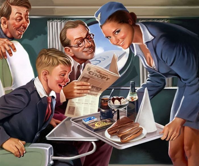 Этот пост для тех, кому еще не попадались иллюстрации художника из Нижнего Новгорода Валерия Барыкина. Они выполнены в забавно-ностальгической манере, и, конечно, являются шуткой, шаржем. Ничего подобного в СССР не было. А жаль!