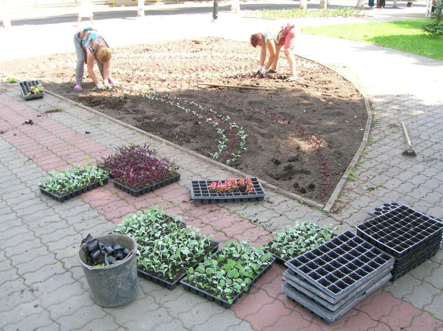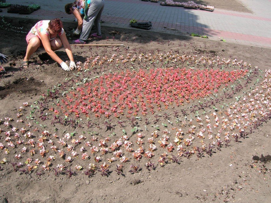 Вчора у сквері навпроти 4 школи посадили півонії та бегонії завждиквітучі. Сьогодні на головній алеї парку культури та відпочинку з'являться сальвії і чорнобривці. Зараз там облаштовують клумби та скошують траву.
