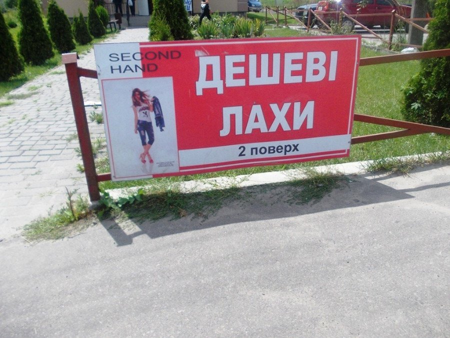 Вивіски, на жаль, відображають рівень естетичного та розумового розвитку жителів пересічного українського райцентру. Було б дивно побачити у ньому щось інше. (:
