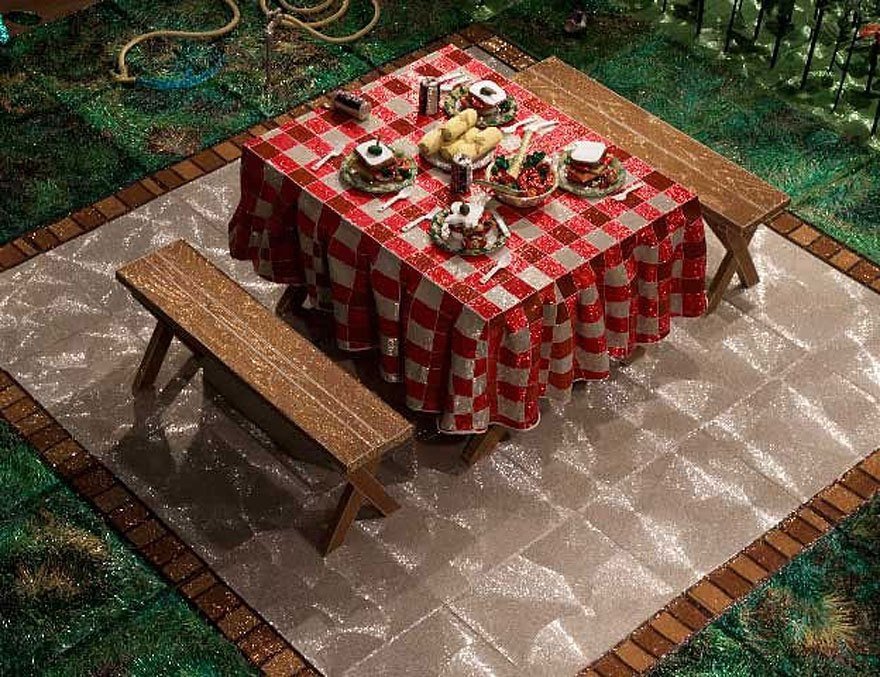 Для свого іншого проекту «Задній двір» Ліза використала понад 30 мільйонів бісеринок, більшість з яких пішли на створення 250 000 травинок навколо столу для пікніка.