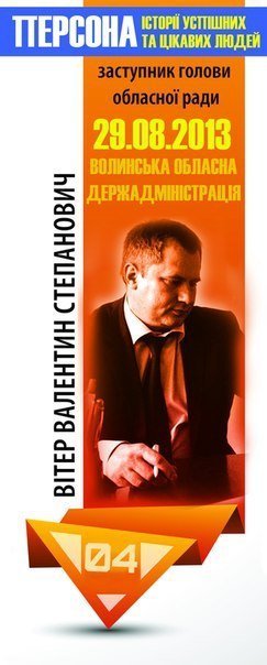 29 серпня відбудеться 4-та зустріч Циклу “Персона” з заступник голови обласної ради – Вітром Валентином Степановичем. Якщо маєш час та бажання то дзвони на цей номер 0666692557.