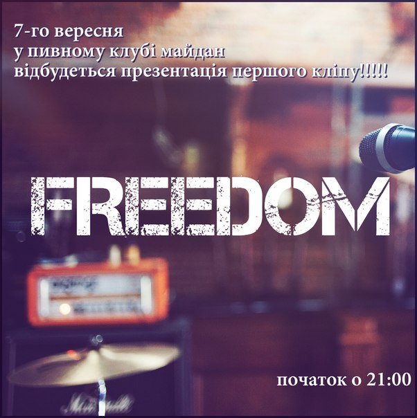Саме у суботу 7-го вересня у пивному клубі Майдан , що по вулиці Бойка, 2 відбудеться презентація дебютного кліпу гурту FREEDOM!!!!!!!!!!!!!