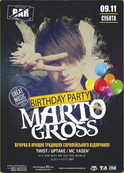 9 листопада выдбудиться у Z-BAR на День Народження Marto Gross