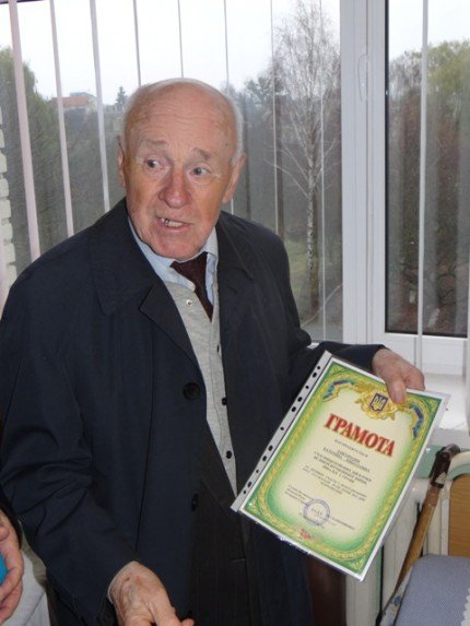 Під час урочистого візиту голова організації Ради ветеранів України у Волинській області Микола Капітоненко привітав колегу з ювілеєм та вручив від організації грамоту за участь в ветеранському русі та з нагоди 90 - річчя від дня народження. З урочистою датою від імені голови Волинської «молодіжки» Петра Сосницького привітав ветерана його заступник Сергій Сучко який під час вітання резюмував: «...дякуємо Вам за той подвиг, який Ви здійснили в ті страшні, нелегкі та скорботні роки життя. Завдяки Вам сьогодні ми маємо мирне небо над головою. Бажаємо Вам здоров'я, довгих років життя та якнайшвидшого одужання».