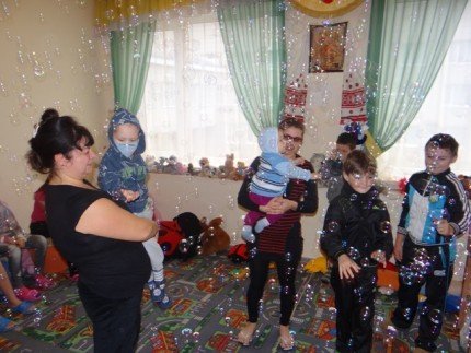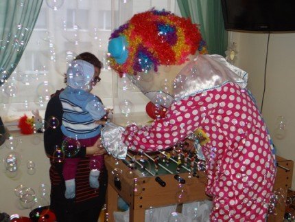 Окрім того, для діток була організована весела та цікава конкурсно-розважальна програма: конкурси, різноманітні рухливі ігри, і все це відбувалося в компанії позитивного клоуна. Апогеєм свята стало шоу мильних бульбашок, під час якого малечі аж дух перехоплювало від захвату. Проте все це дрібниці в порівнянні зі щасливими сяючими очима малюків та порцією позитиву і гарного настрою, що кожен з присутніх неодмінно забрав з собою, на жаль не додому, а в лікарняну палату!