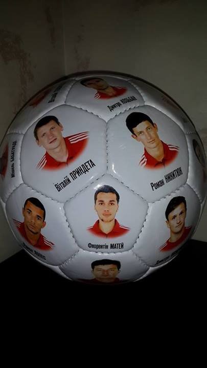 Такий м`яч з портретами гравцiв могли б i виставити на продаж в клубному магазинi.