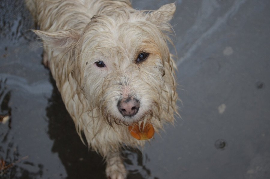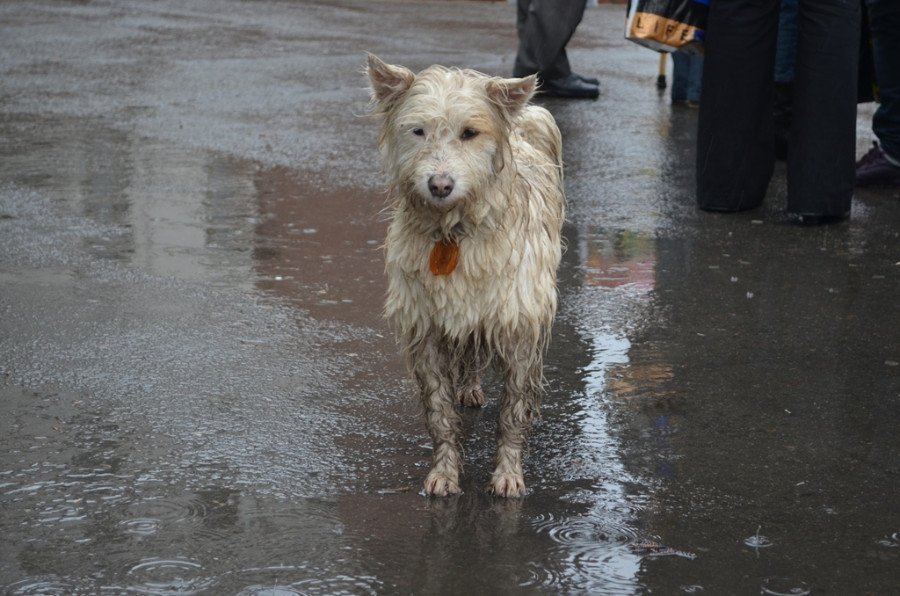 Собачку звати Бєлка. Її господар помер, вона залишилася на вулиці. Але не зважаючи на вуличне життя, Бєлка залишилася домашньою і любить людську ласку.