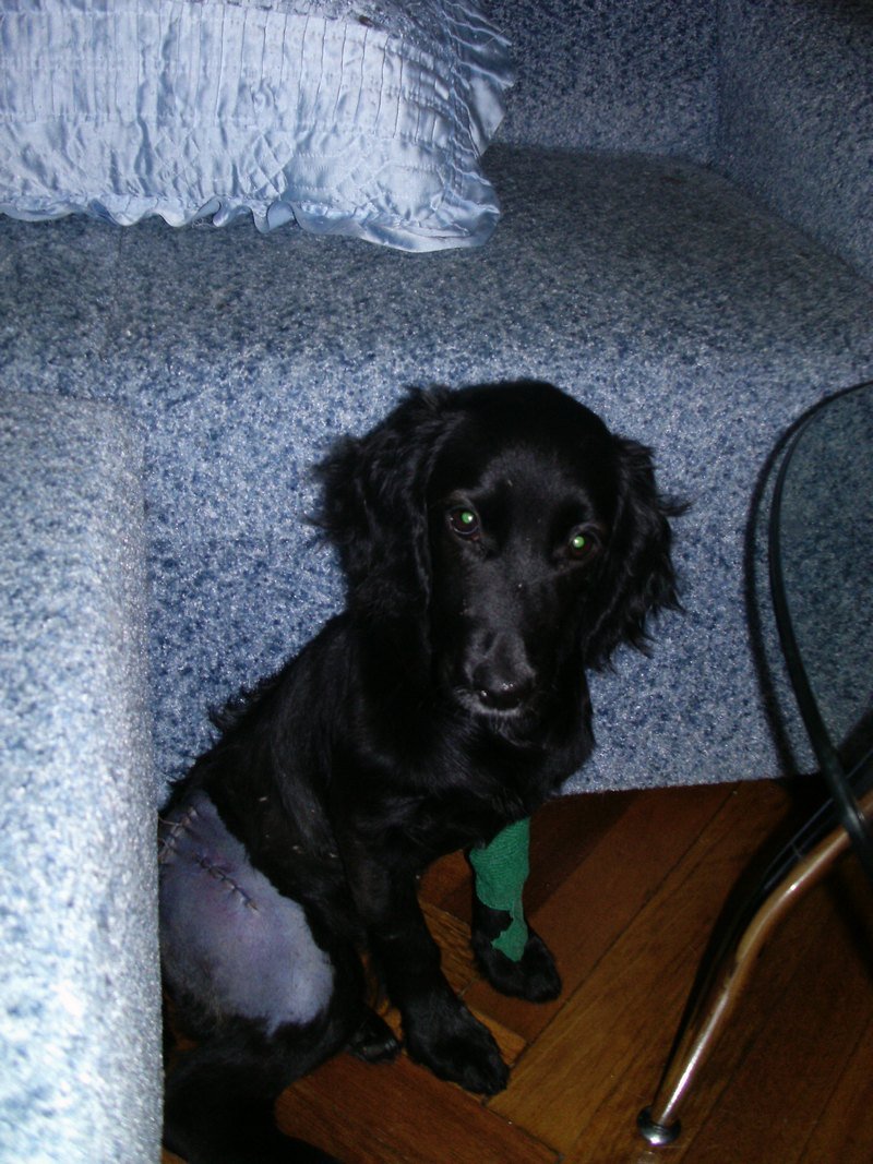 Саманта потрапила до притулку. Після тяжкої операції у ще одній приватній вет.клініці, де є спеціальне обладнання для таких операцій, малеча опинилась у дома у директора КП «Ласка», адже реабілітація після такої операція непроста і вимагає особливого догляду.