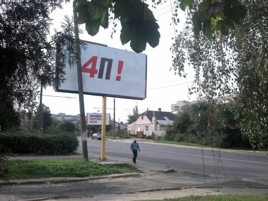 гадаю Порох, шрифт його, якраз перед білбордом "Батьківщини". Все правильно