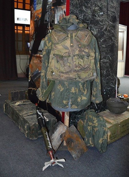 Також в експозиції широко представлено речі, зібрані на місцях боїв в районі Савур-Могили та Іловайська пошуковою групою Союзу "Народна Пам`ять" та військово-історичного музею, що збирала тіла загиблих українських військовослужбовців.