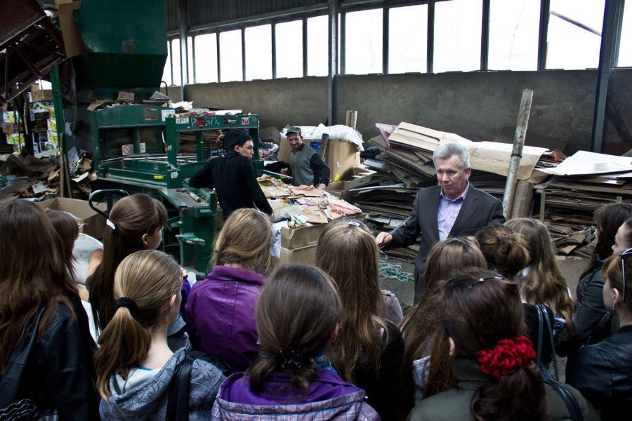 Студентам була проведена наглядова екскурсія підприємством, показано як сортується папір, пластик, текстиль, скло. Найбільше, що здивувало відвідувачів це те, що на цьому підприємстві немає жодного запаху сміття.