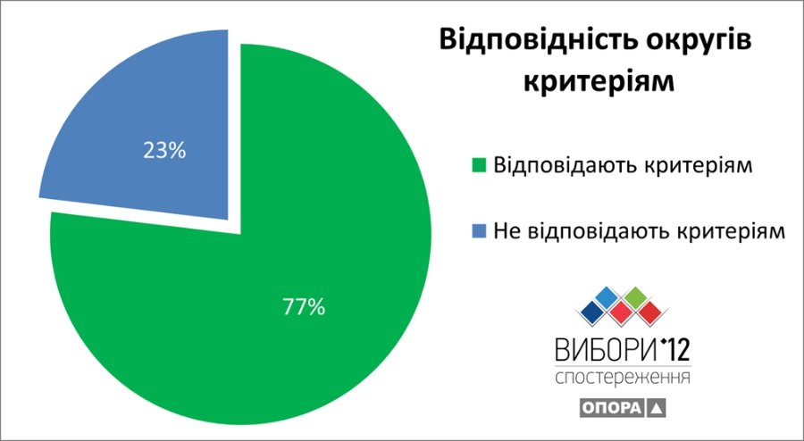 Окрему увагу ОПОРА звернула на округи, нові межі яких позитивно чи негативно впливатимуть на кампанії кандидатів, що вже проводить агітаційну діяльність. Так, 19 виборчих округів або 8,4 % від їх загальної кількості утворені в конфігурації, яка допомагатиме чи заважатиме оптимальним результатам кампанії кандидатів.