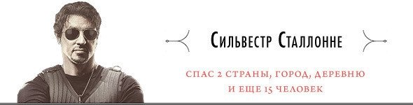 Сильвестр Сталлоне известен всему миру по одним из самых мужественных образов Голливуда — солдата Джона Рэмбо и боксера Рокки Бальбоа. В жизненных ситуациях Слай тоже показывает себя настоящим мужиком: в 2002 году он спас пассажиров лифта в недавно открывшемся лос-анджелесском кинотеатре. Когда лифт застрял между этажами, Сталлоне выбрался через люк и голыми руками вытянул кабину с пассажирами к ближайшему этажу. В лифте находились жена Слая Дженнифер Флавин, ведущий Ларри Кинг и актриса Мира Сорвино.
